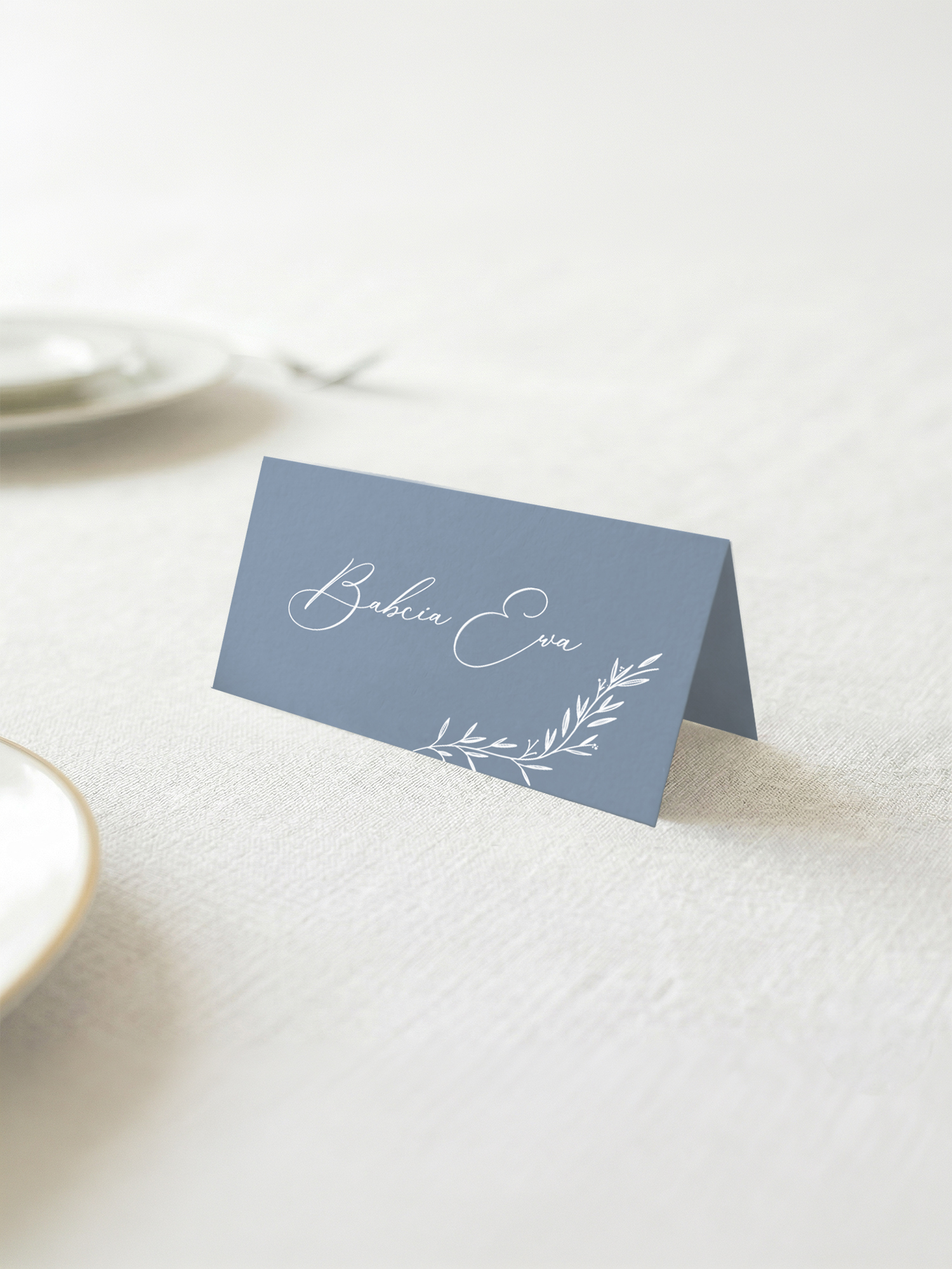 Winietki drukujemy na wysokiej jakości niebieskim papierze z nadrukiem w kolorze białym, co pozwala dopasować je do wybranego stylu i dodatków.