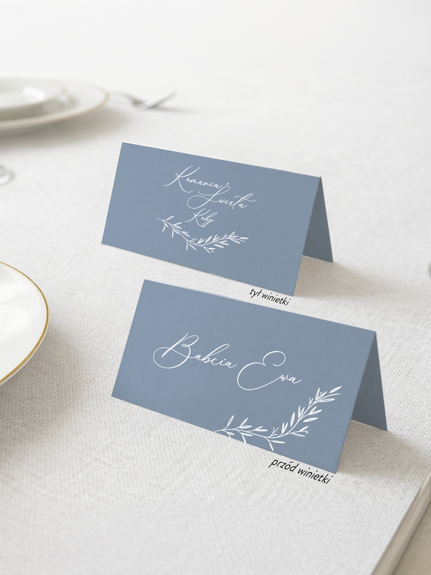 Minimalistyczne winietki na Komunię Świętą, które subtelnie uzupełnią dekorację stołu i pomogą w organizacji przyjęcia. Prosty, elegancki styl sprawia, że pasują do różnych aranżacji – od klasycznych po bardziej nowoczesne.