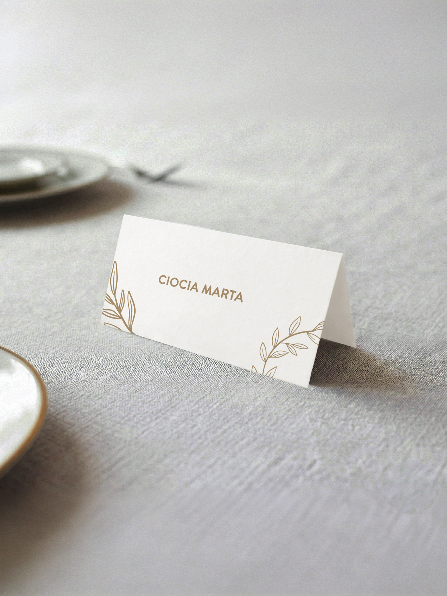 Winietki drukujemy na wysokiej jakości papierze z delikatnym beżowym nadrukiem z listkami, co pozwala dopasować je do wybranego stylu i dodatków.