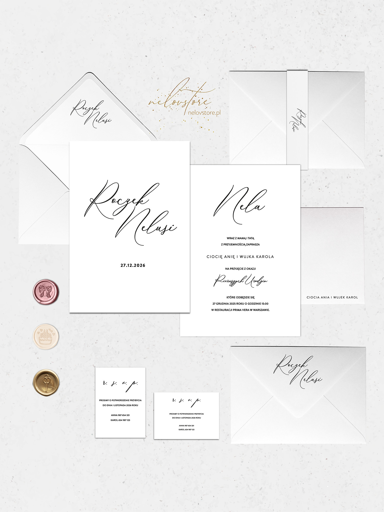 - Zaproszenia mogą być personalizowane lub puste do ręcznego wypisania.