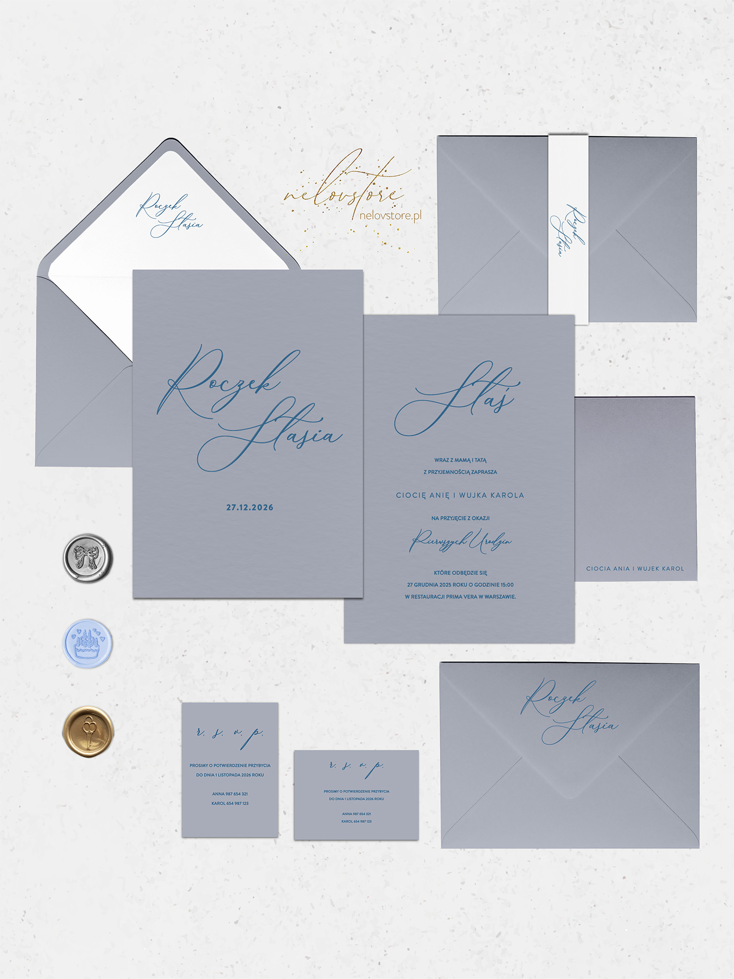 - Do zaproszeń możesz zamówić pozostałe elementy papeterii, np winietki, menu itp