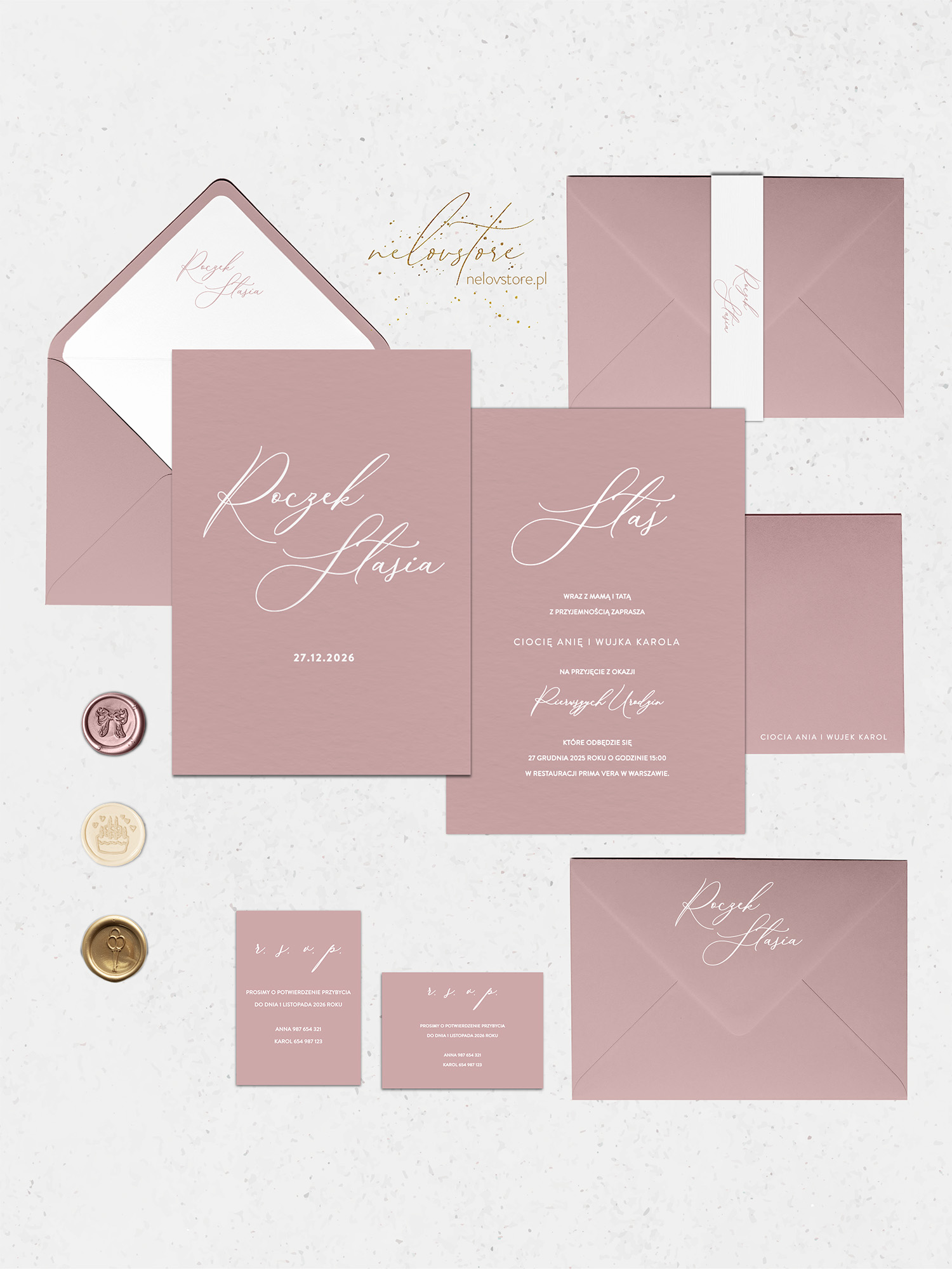 • W zestawie: dwustronne zaproszenie + koperta bez zadruku i odbicia lakowego