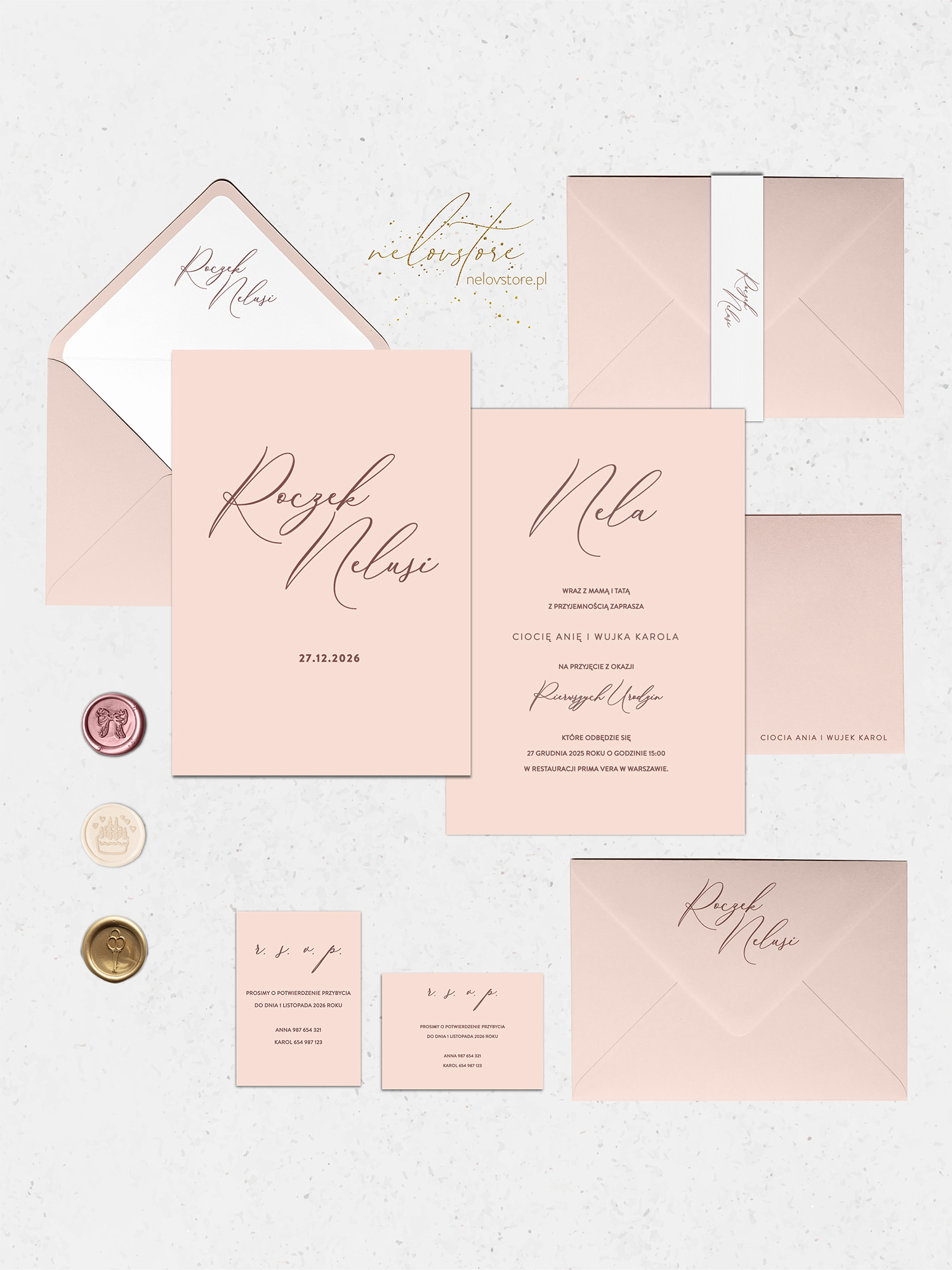 - Do zaproszeń możesz zamówić pozostałe elementy papeterii, np winietki, menu itp