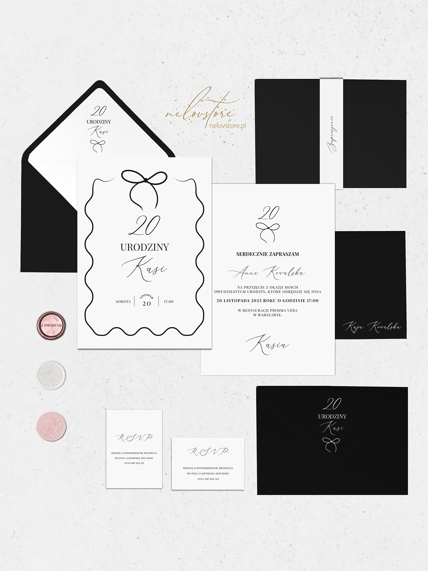 Zaproszenia urodzinowe z czarną kokardą - zdjęcie główneZaproszenia urodzinowe z czerwoną kokardą - zdjęcie główneZaproszenia urodzinowe z różową kokardą - zdjęcie główne