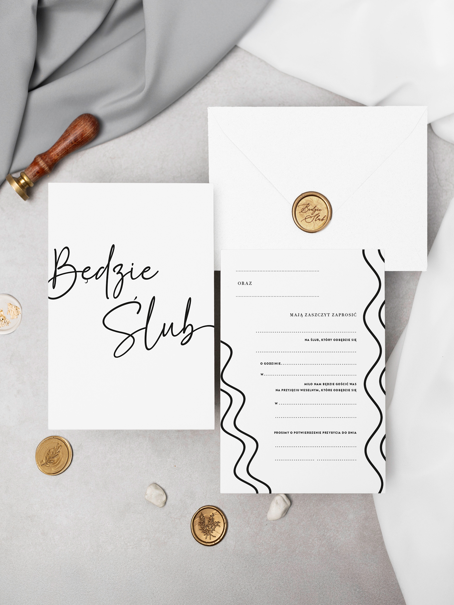 - Do zaproszeń możesz zamówić pozostałe elementy papeterii ślubnej.