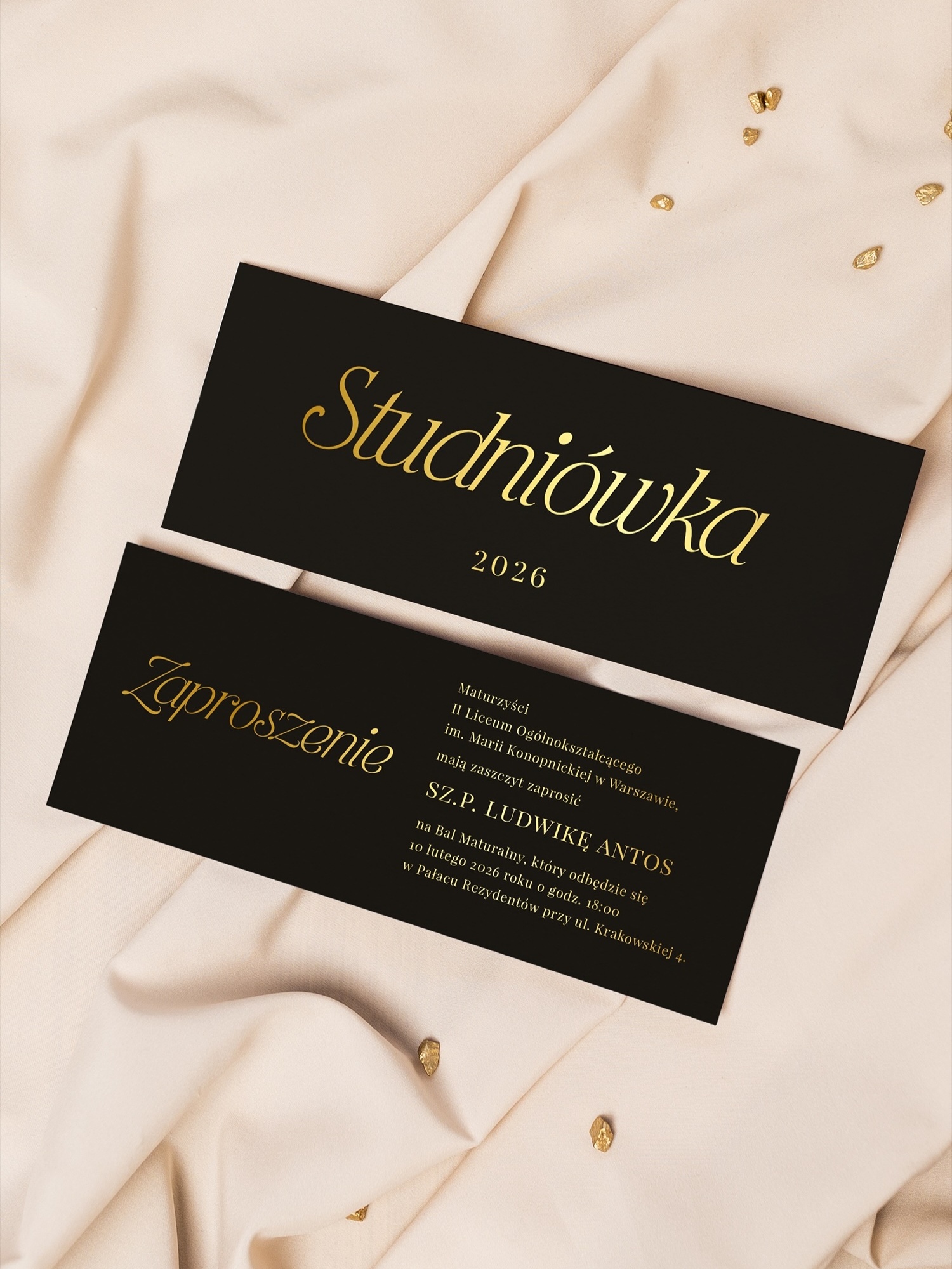 - Zaproszenia mogą być personalizowane lub puste do ręcznego wypisania.