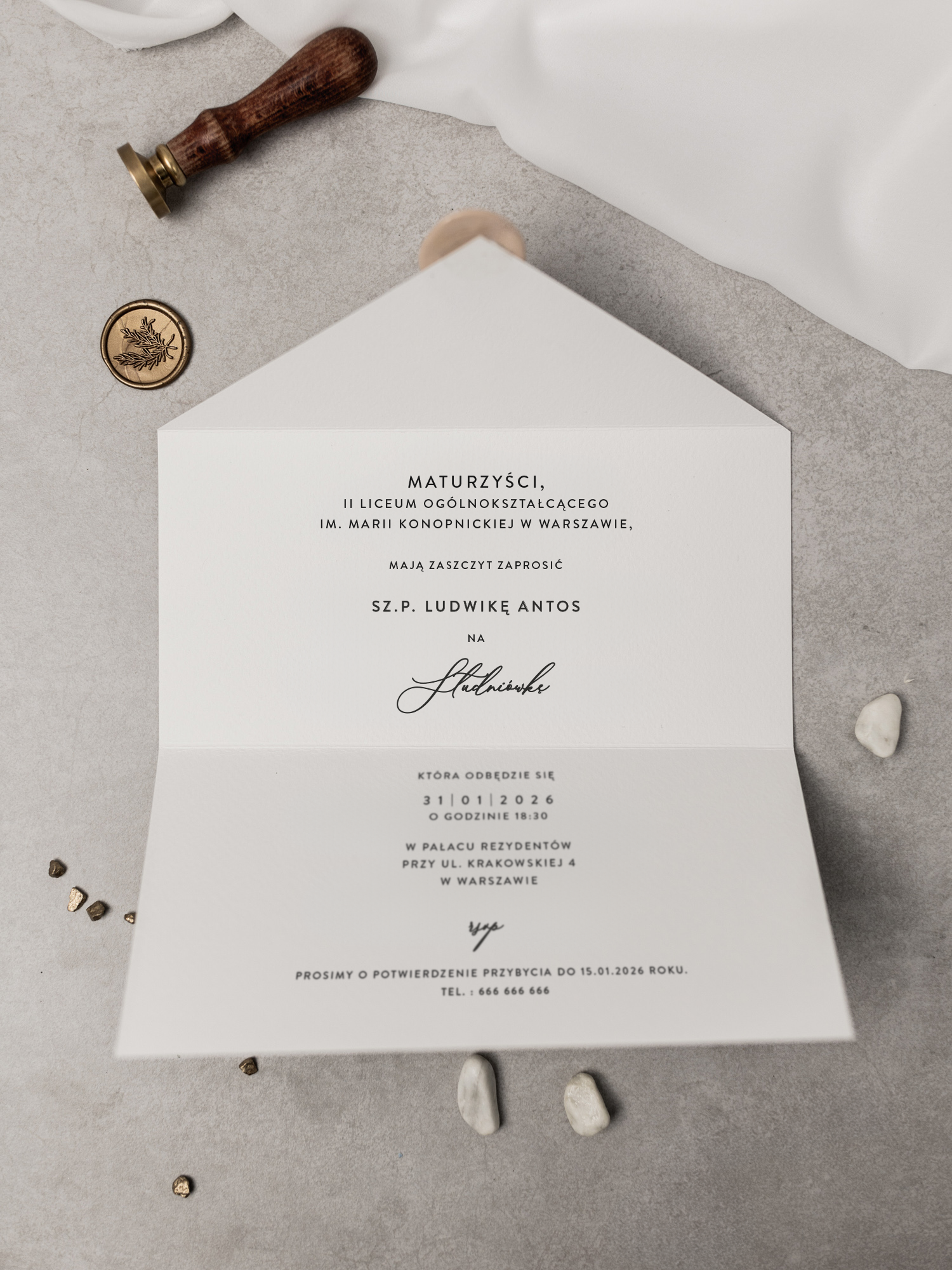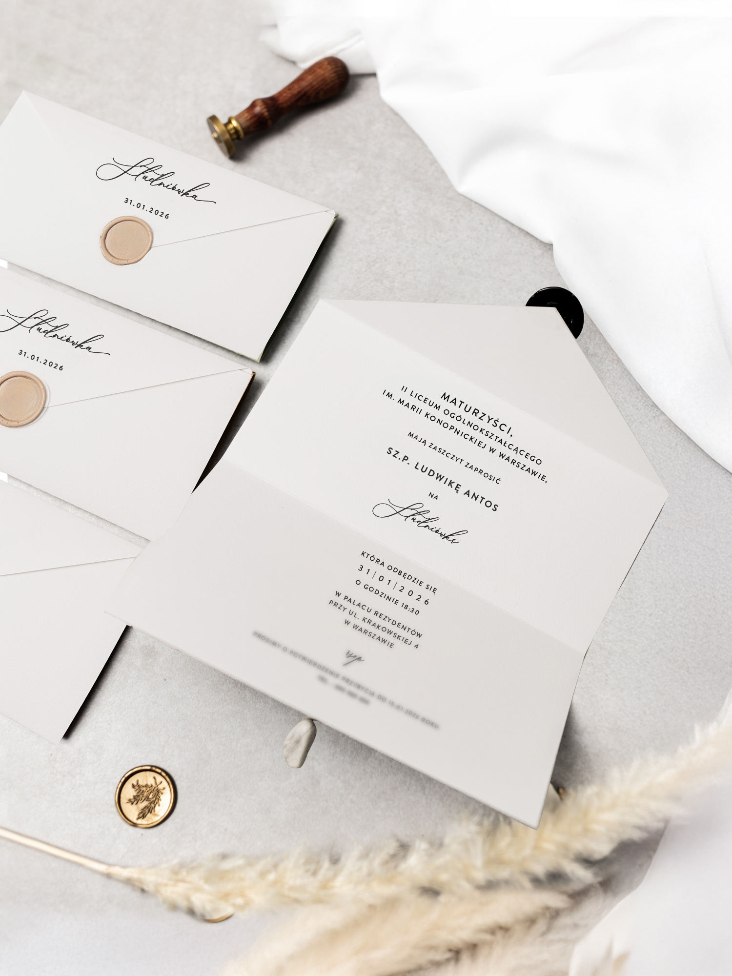 - W zestawie: składane zaproszenie w formie listu + odbicie lakowe