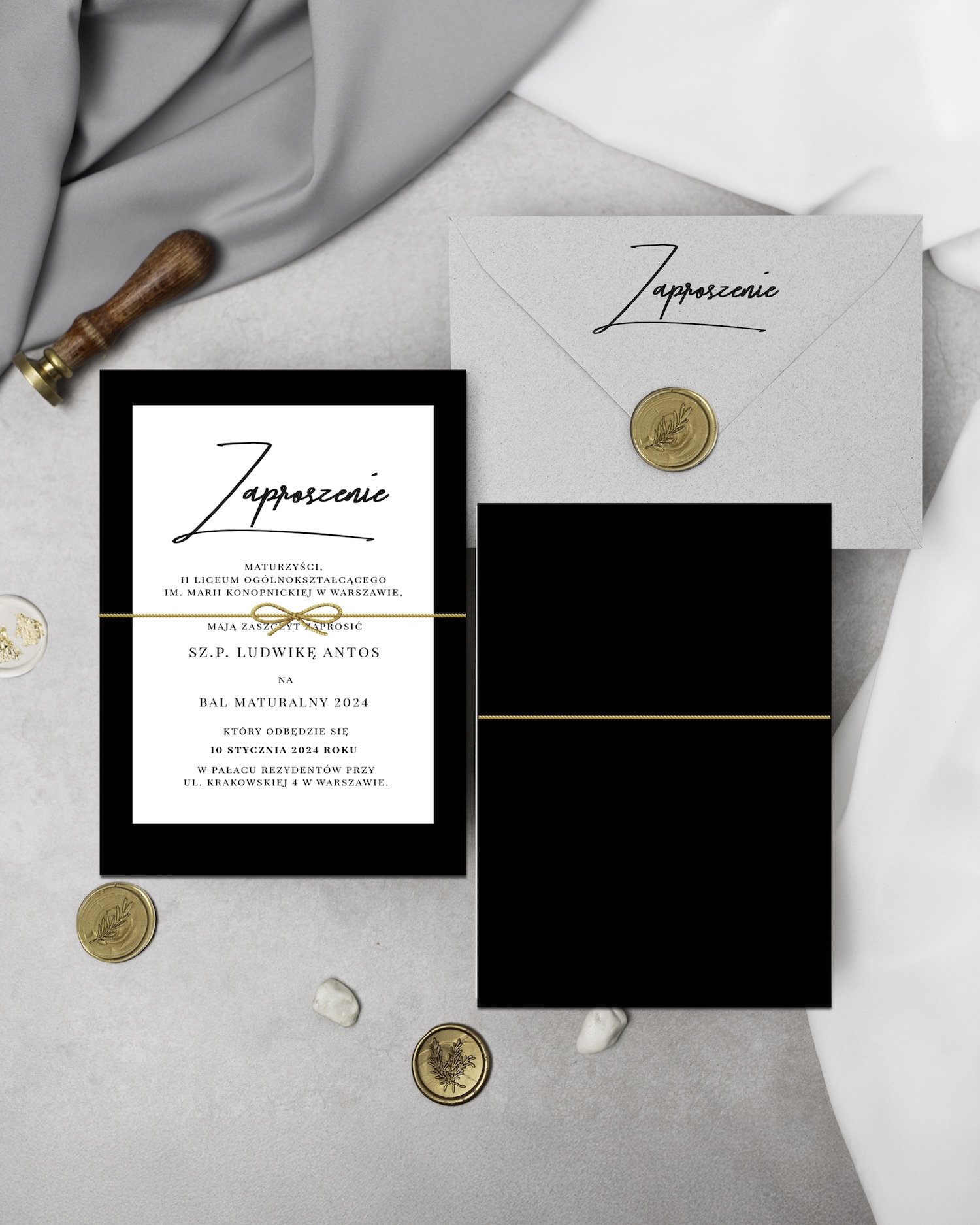 Zaproszenie na studniówkę eleganckie ze sznureczkiem